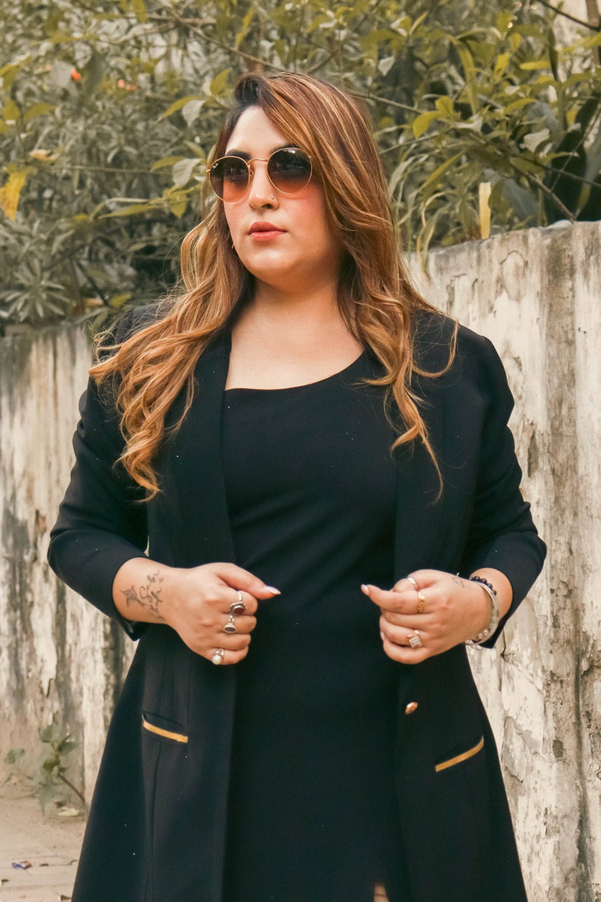 Command the room in the Black Hour Set. A curve-hugging black dress, designed to flatter, meets a power-player blazer dripping in subtle gold detail. The knee-length cut adds a touch of authority, while the single-button closure keeps things sleek and sophisticated. Whether you're closing deals or stealing hearts, the Black Hour Set ensures you're always dressed for success. Own your moment. Own the room.